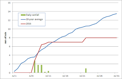 Calgary also greatly differs from Victoria in the seasonal pattern of its precipitation. Victoria gets most of its rain in late fall and winter, while the late spring and summer is very dry. In Calgary, the precipitation pattern is the opposite of this, with a very dry late fall and winter, but a decidedly wet late spring and summer. You can see the difference in the chart below. The driest six months in Victoria occur during the growing season, from April to September, with a total of just 137 mm, or 21% of the annual total during that period. By contrast, April to September are the wettest six months of the year in Calgary, with 344 mm or about 82% of the annual total (and two and half times as much rain as Victoria gets during the growing season). During Victoria's wettest months, in November, December, and January, it gets about ten times as much precipitation as Calgary, but during the dry summer months of June, July, and August, Calgary gets four to five times as much rain as Victoria. While Victoria gets more annual precipitation than Calgary, Victoria, on average, is drier than Calgary during five months; May, June, July, August, and September, One of the big reasons for the much drier summers in Victoria is the lack of thunderstorms: Calgary averages about 27 days annually with thunderstorms - nearly all between May and August - compared with about one day per year in Victoria.